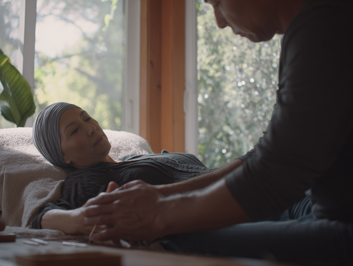 Acupuncture is a key modality of Traditional Chinese Medicine (TCM). It involves the insertion of ultra-fine needles into specific points on the body to regulate the flow of energy, or “Qi.” This helps the body restore balance, reduce inflammation, and activate its natural healing response. For cancer patients, acupuncture doesn’t treat the cancer itself—it helps ease the side effects of treatment and supports the body’s resilience.